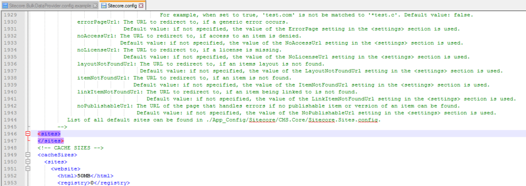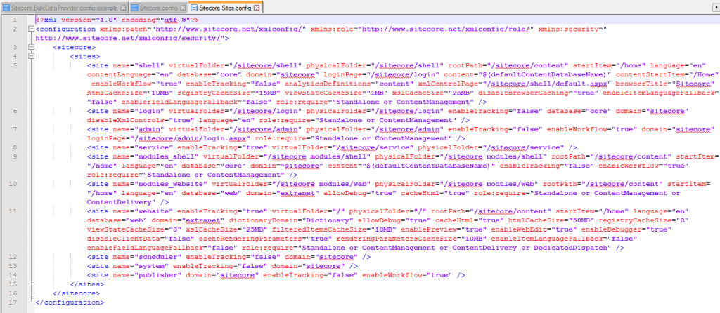 This made curious to find the all site nodes. And then notepad++ search feature helped me to find the config file where all these site nodes are moved. The new file where it is moved is Sitecore.Sites.config at the path – \App_Config\Sitecore\CMS.Core
