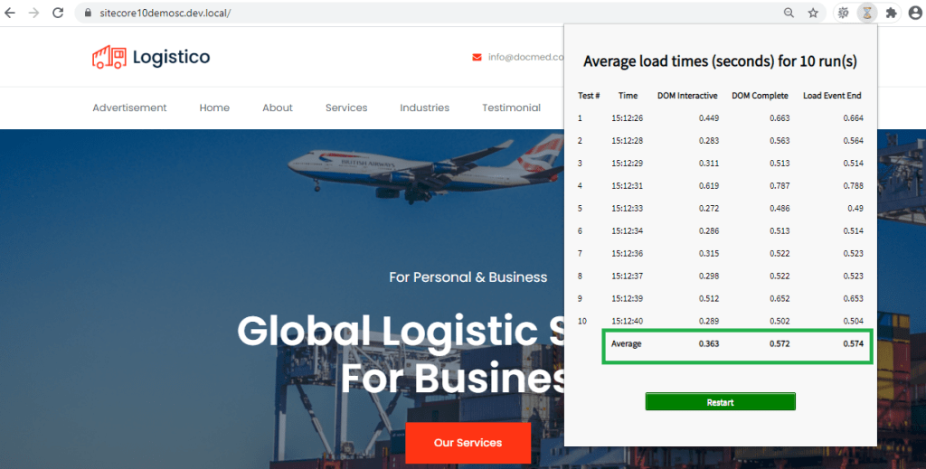 Lets see the page load time of my home page before implementing caching strategy.