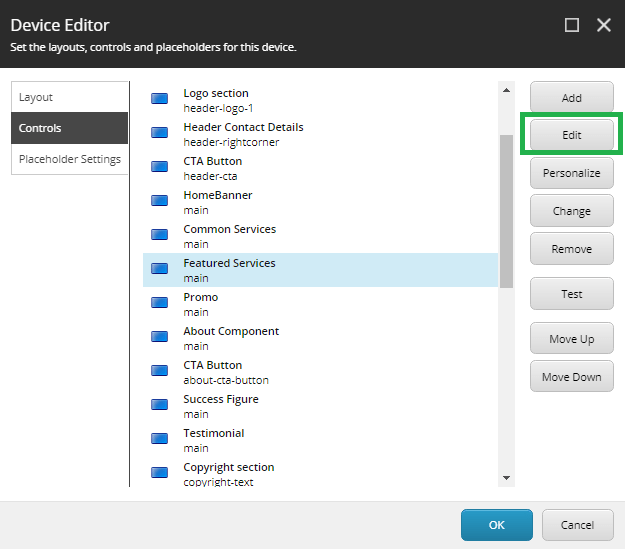 - Go to Controls >> Select the rendering(in my case Featured Services) >> Edit