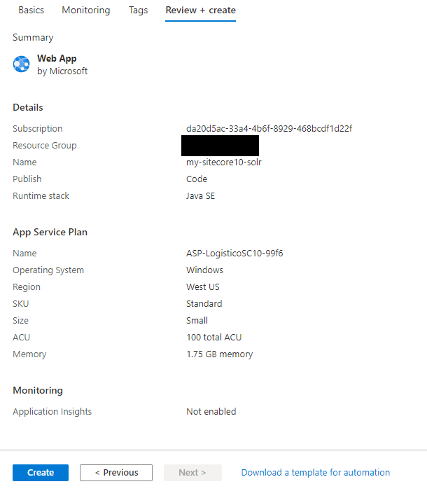 May I please suggest an addition to this article to not turn on Azure Application Insights. When this is turned on, SOLR refuses to start and will save people a lot of heartache in the future.
