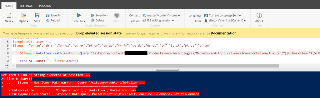 + ... $Items = Get-Item -Path master: -Query "/sitecore/content/hbfuller ...