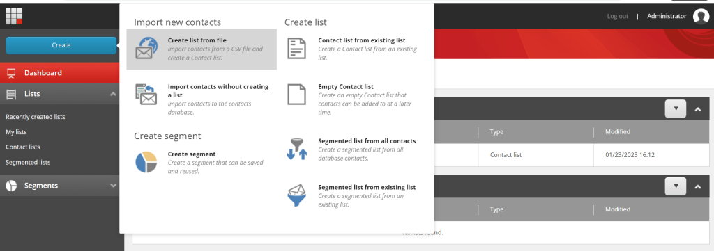 - Go to List Manager and click on Create Button and select create list from file.