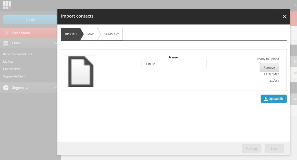 2. Click on Browse for a CSV file button and select the file you created.