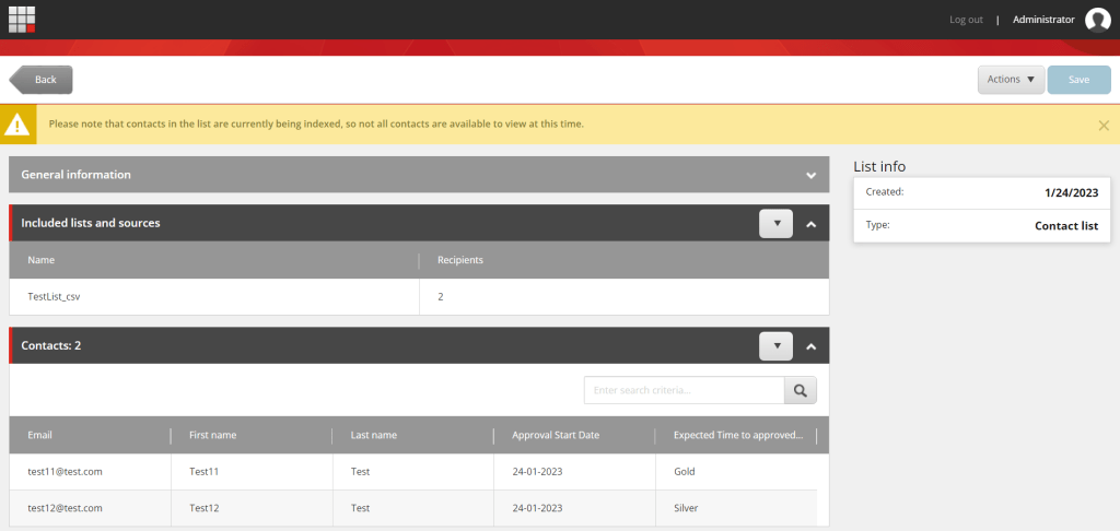Once this setting is completed in Core DB, we are all set to test the functionality. Create a CSV file with these 5 columns and try to import it in the List Manager.