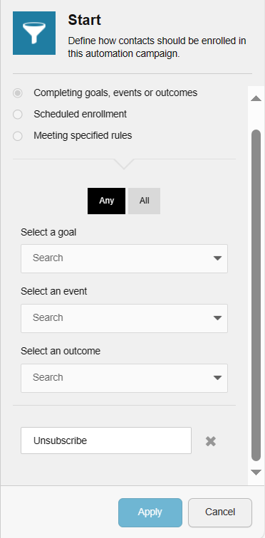 - Add an action between Add Contact to a list and End, Unsubscribe from a list.